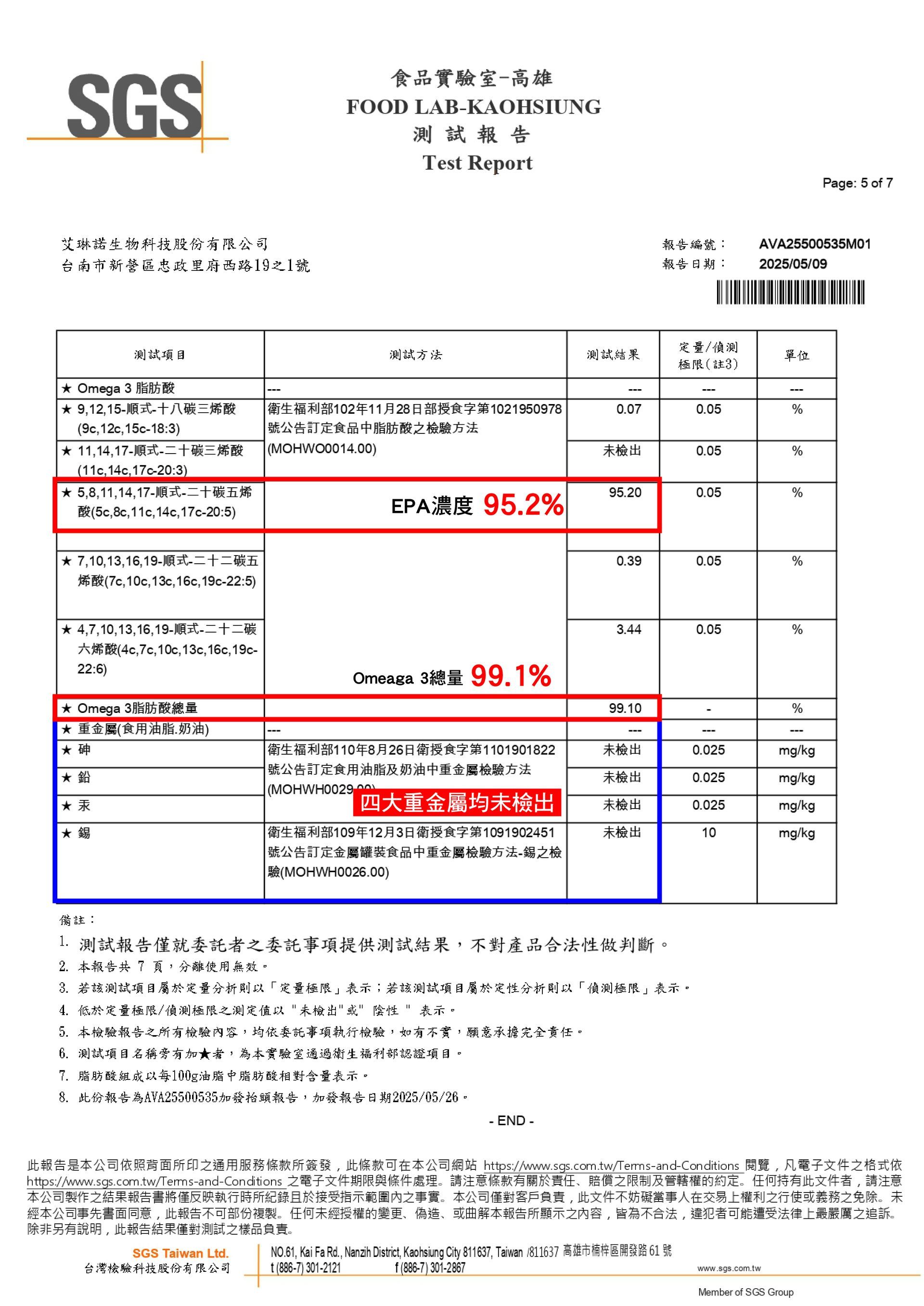 SGS檢驗報告