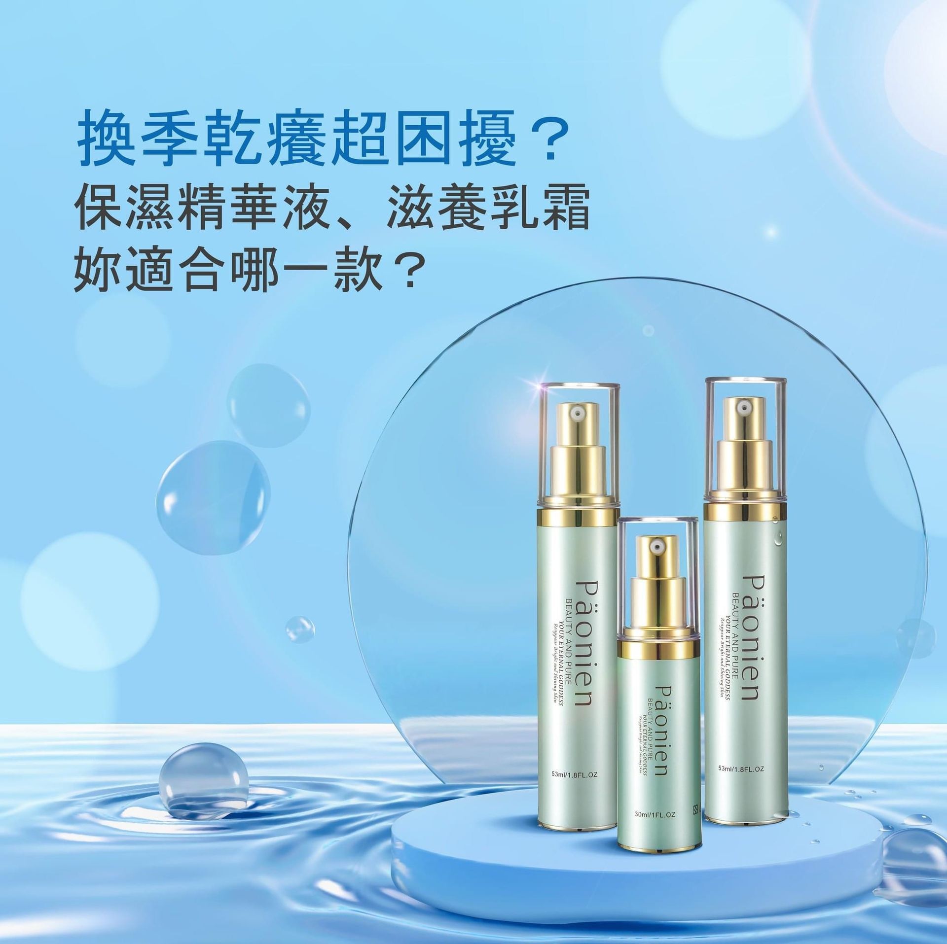 有些肌膚在換季時,會因出油量減少臉頰稍微感到乾澀、乾癢,可以選擇水嫩保濕的精華液質地,給予剛剛好的保濕力。