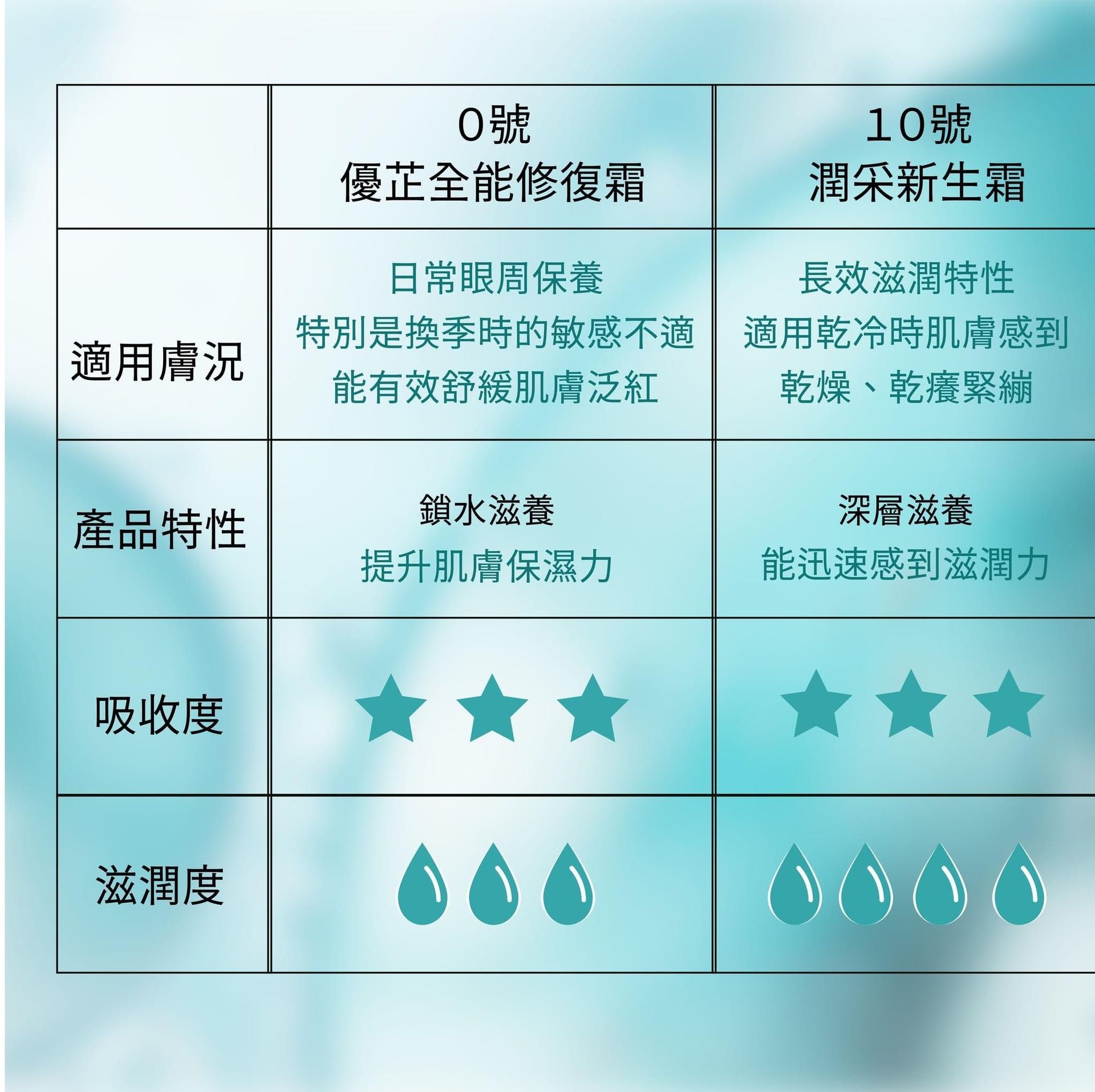 針對肌膚較乾燥、敏感的區域(眼周、雙頰)選擇適合的保濕產品,例如乾燥脫皮的區域可以選擇滋潤型乳霜質地,快速補水及鎖水,安撫換季敏感不適。
