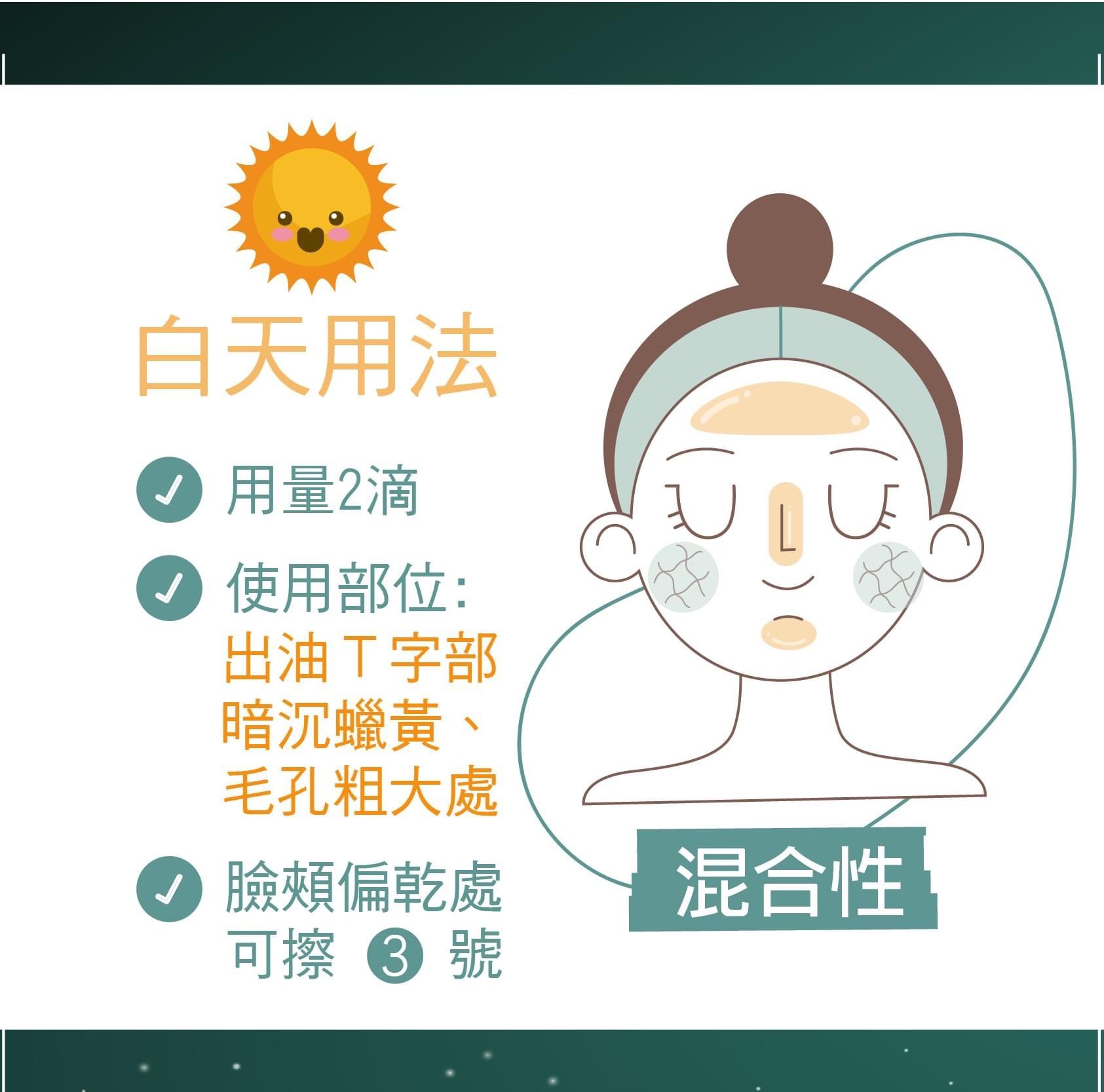 ➋使用部位:易出油T字部及暗沉蠟黃、毛孔粗大處