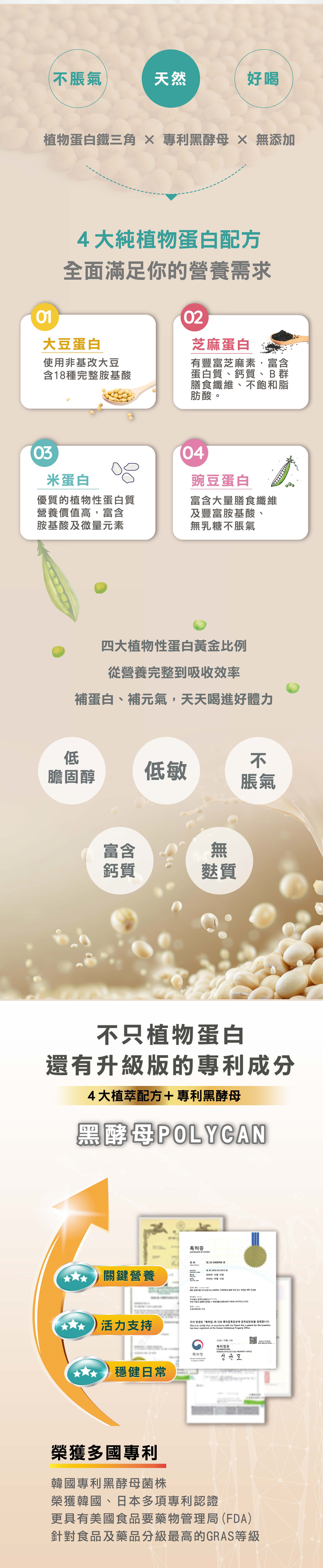 多元植物蛋白配方|精選四大純植物蛋白(豌豆蛋白、大豆蛋白、米蛋白、芝麻蛋白)